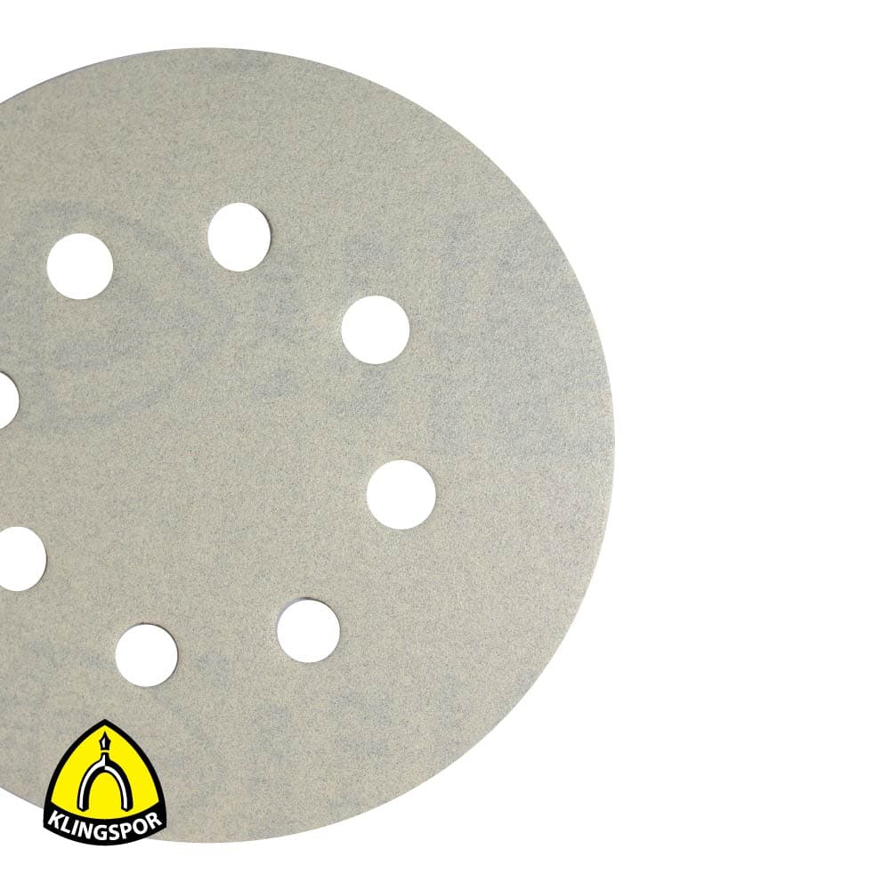 Como base para el disco abrasivo PS 33 CK, Klingspor utiliza un soporte de papel (papel C). Se trata de un papel semi-pesado que se puede cortar, arrancar y doblar con facilidad. Para mecanizar puntos difícilmente accesibles con la lijadora excéntrica, el papel abrasivo también se puede doblar o arrancar para permitir el lijado manual.