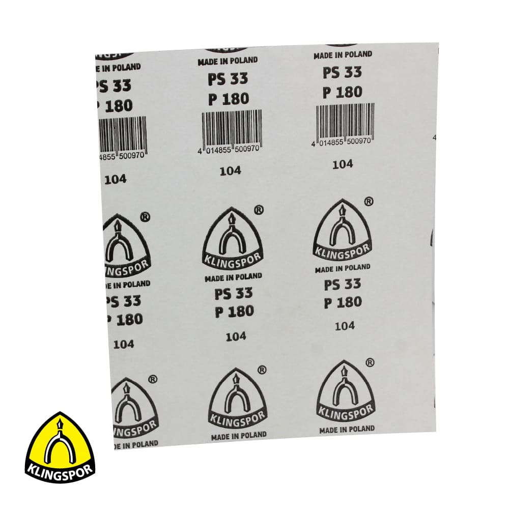 El pliego abrasivo PS 33 B de Klingspor es apropiado para el lijado manual de laca, pintura, masilla y madera.