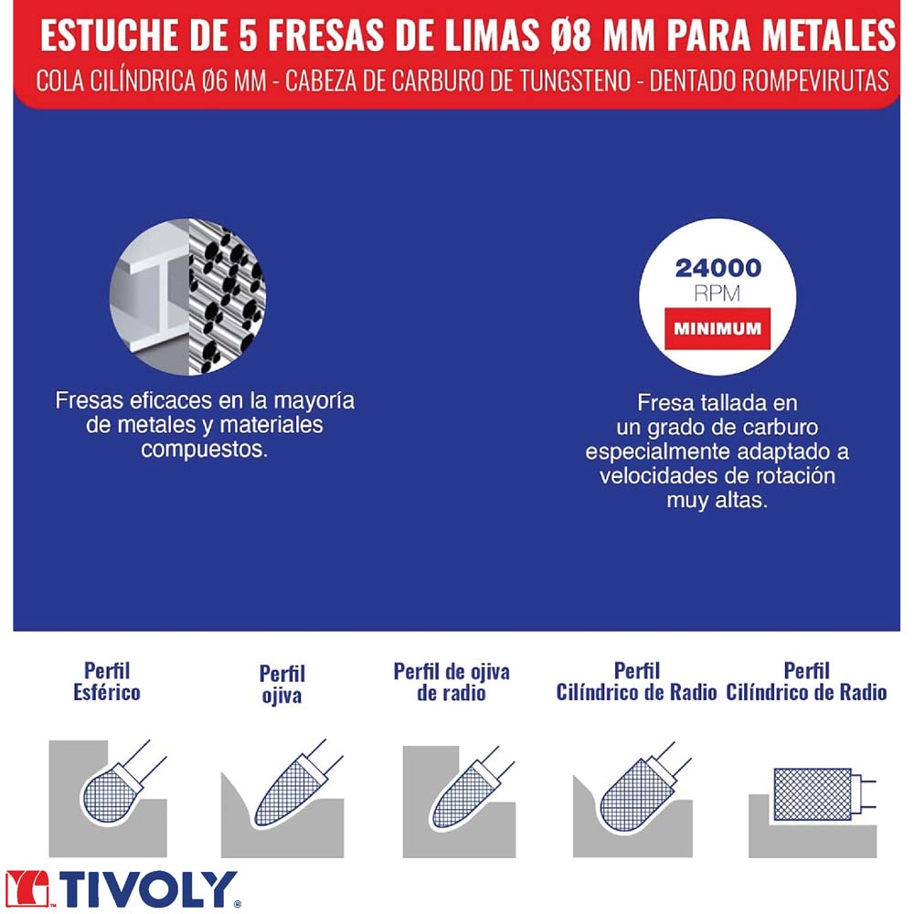 • Permite un limado eficaz de la mayoría de los metales y una excelente rotura de las virutas y ofrece acabados superficiales impecables.