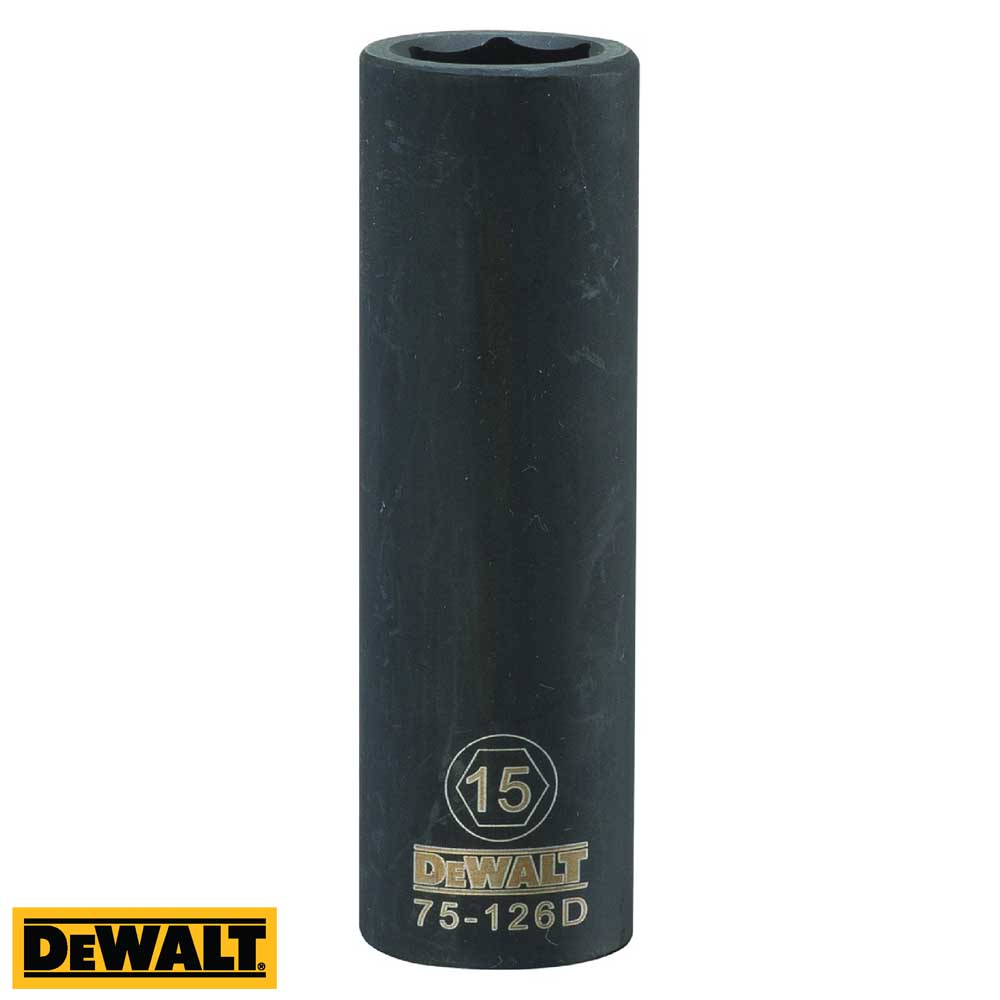 Copa de impacto profundo DeWalt de 15 mm x 1/2 pulg., métrico, de 6 puntas (1 unidad)