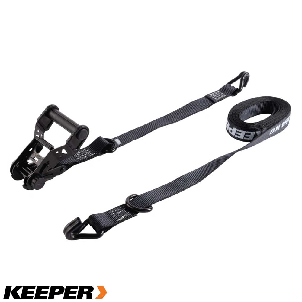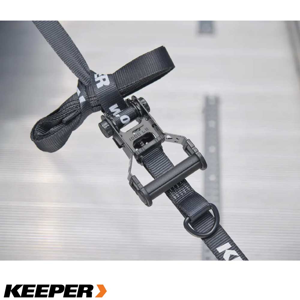 Cuando las cosas se ponen difíciles, el amarre de trinquete de combate Keeper es la solución. La cinta Extreme de 3.2 cm de ancho es más resistente a la abrasión y a los cortes que otros amarres. Las asas extra anchas con reborde de diamante garantizan un agarre antideslizante y facilidad de uso incluso con guantes.