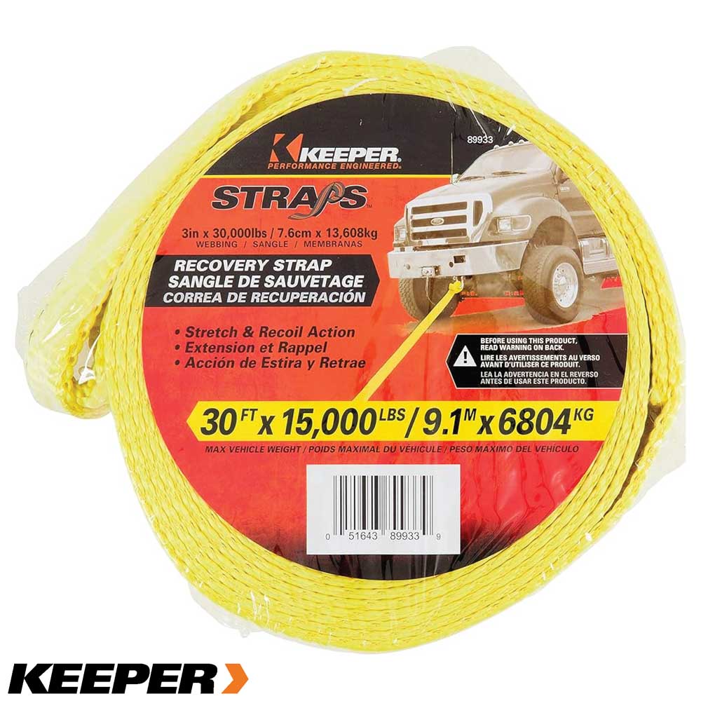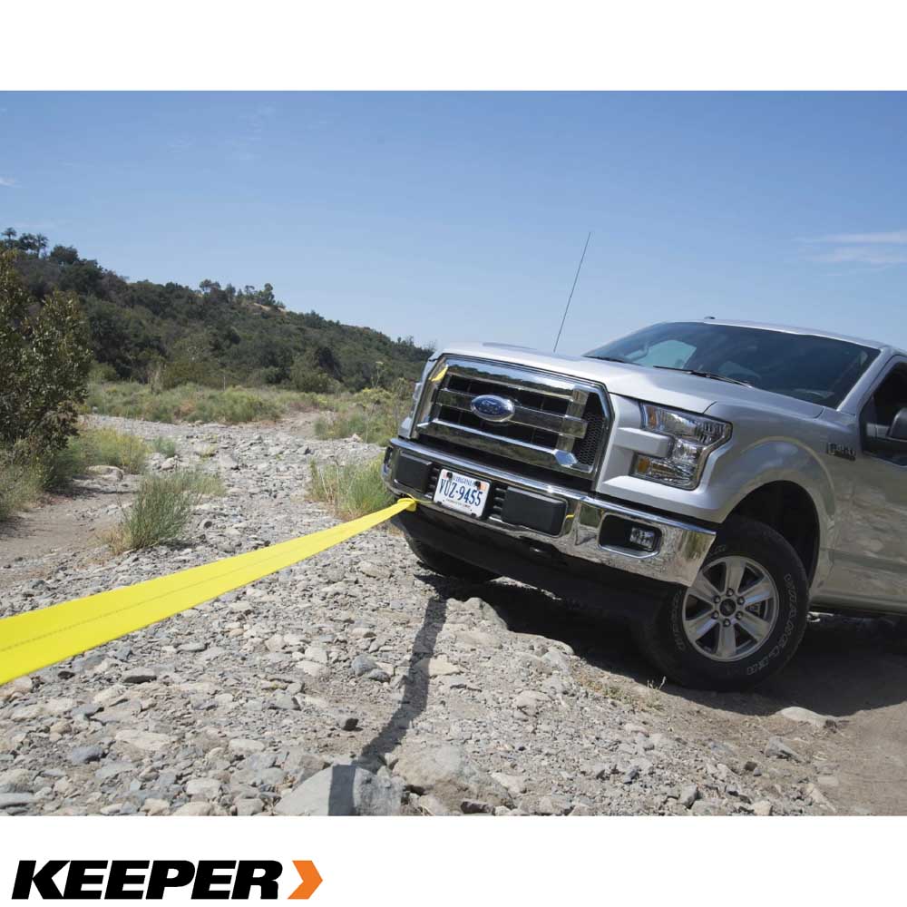 Las correas de recuperación Keeper, diseñadas para un rendimiento óptimo, son la mejor opción para remolcar un vehículo atascado o averiado. Más ligeras que una cadena y resistentes al óxido, la corrosión y el moho. La cinta Hi-Test® cuenta con tres capas de hilo de alta tenacidad para mayor protección, resistencia y durabilidad. Con un peso máximo del vehículo de 6800 kg, es ideal para camionetas 4x4 y SUV grandes ||Keeper||