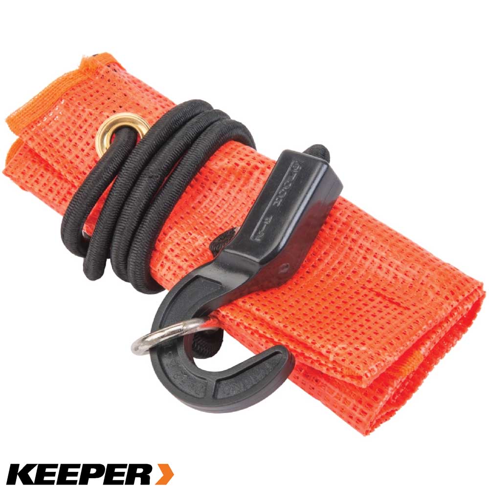La bandera de seguridad elástica Keeper® es ideal para identificar cargas colgantes. Está fabricada con malla resistente a la intemperie de alta visibilidad para usarla todo el año. La bandera mide 45,7 cm x 45,7 cm y tiene un cordón elástico de 91,4 cm para sujetarla fácilmente a cargas de diversos tamaños. ||Keeper||