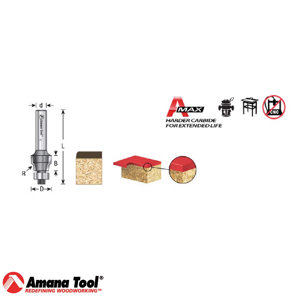 Fresa punta de carburo sin lima, corte de radio de 0,059 x diámetro de 1/2 x vástago de 3/8 x 1/4 de pulgada