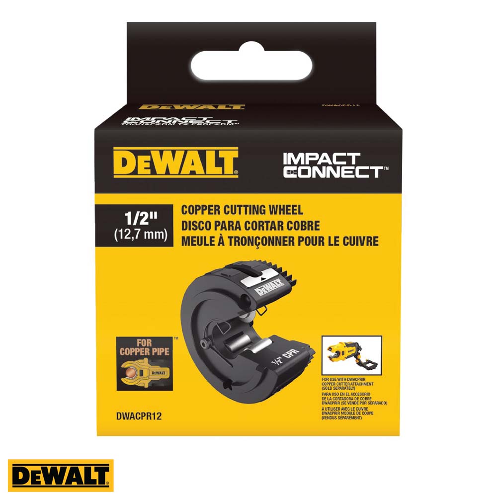 Esta rueda de corte de cobre IMPACT CONNECT™ de 1/2 pulg. está diseñada para su uso con su accesorio de corte de cobre DEWALT® IMPACT CONNECT™ (se vende por separado) para ofrecer una velocidad de corte 4 veces más rápida. Vuelva al trabajo rápidamente al reemplazar la rueda de corte IMPACT CONNECT™ con este producto que viene completamente armado y listo para usar al sacarlo de la caja. Como parte del sistema IMPACT CONNECT™ que ofrece compatibilidad multimarca, este anillo de corte de reemplazo directo ofrece un rendimiento optimizado para los tipos de cobre K, L y M cuando se utiliza con su accesorio de corte de cobre DEWALT® IMPACT CONNECT™ y su atornillador de impacto.