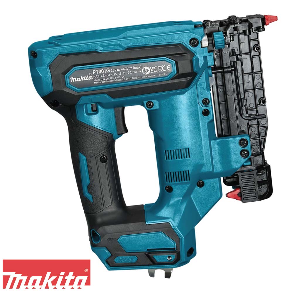 La PT001G de Makita es una excelente opción para cuando se necesita ser preciso y altamente eficiente. También está clasificado como IP56 para la construcción a prueba de polvo y ducha. Maneja 5 longitudes diferentes de clavos de calibre 23, 15mm (9/16"), 18mm (11/16"), 25mm (1"), 30mm (1.3/16"), 35mm (1.3/8").