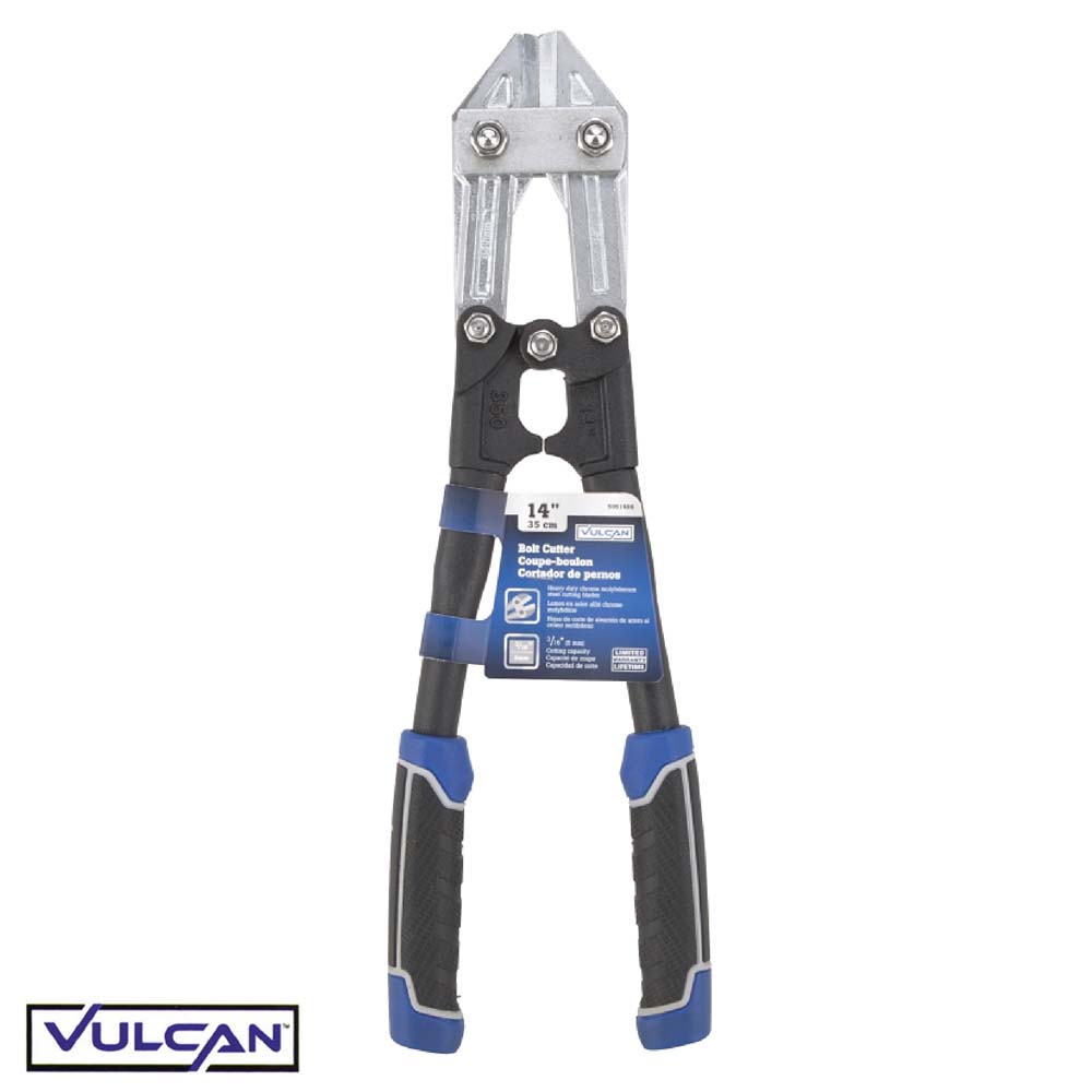 Cortador de pernos Vulcan JL-WD-0614, capacidad de corte de 5 mm, mordaza de acero al cromo-molibdeno, longitud total de 35,5 cm (14"), mango negro/azul