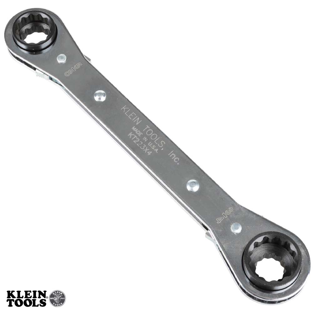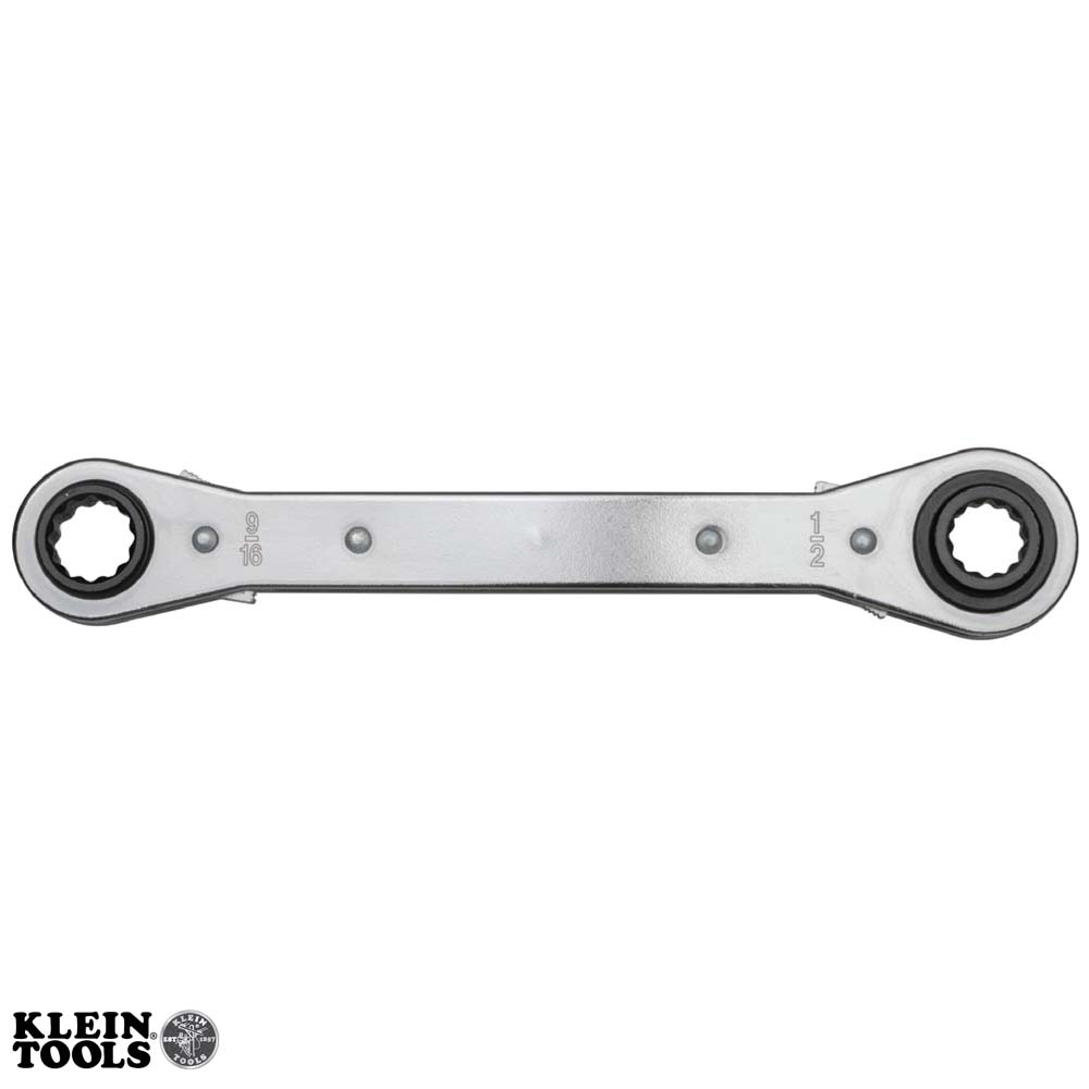 • Llave de estrías de liniero con matraca 4 en 1 que cuenta con dados de 1/2'', 9/16'', 5/8'' y 3/4'' y bordes lisos para mayor comodidad durante el uso