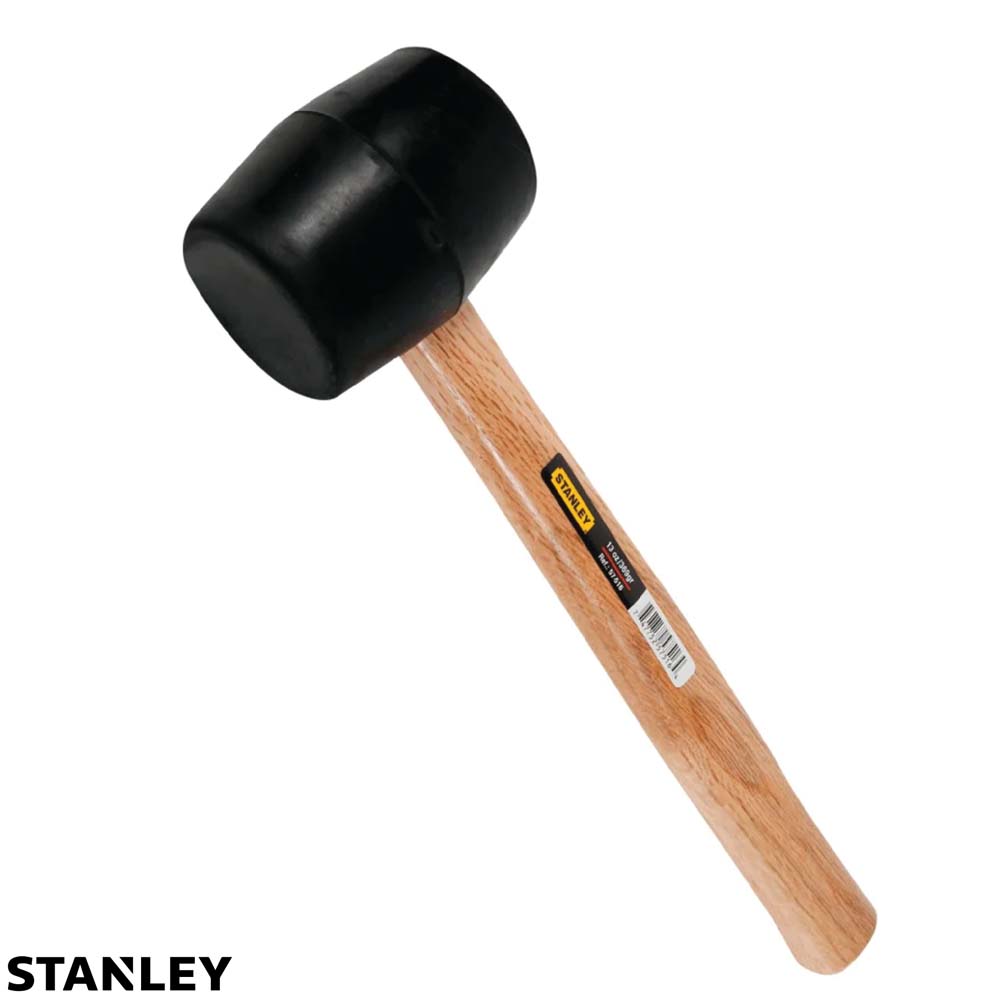 Cuenta con una cabeza de goma resiente moldeada en un mango de madera.