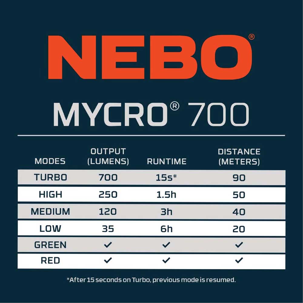 La MYCRO® 700 es una linterna frontal ultracompacta, brillante y versátil con un diseño de montaje 2 en 1. Cuenta con 6 modos de luz, incluyendo un modo turbo de 700 lúmenes con una luz diurna nítida y fría que permite ver hasta el más mínimo detalle. Su batería recargable dura hasta 6 horas en modo bajo. Con un rango de inclinación de 130°, puedes dirigir la luz con precisión para obtener el ángulo de visión perfecto. Además, se transforma fácilmente de linterna frontal a luz de gorra con el clip incluido, que no requiere herramientas. Los LED rojos y verdes, junto con la función de luz roja directa, te ofrecen excelentes opciones para preservar tu visión nocturna. Su resistente construcción en aluminio y ABS la convierte en la solución de iluminación manos libres perfecta.