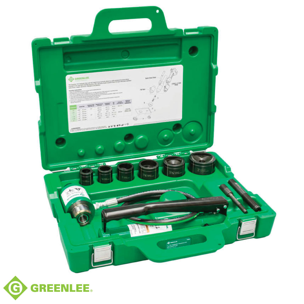 INCLUYE: Ariete 746A y bomba manual 767 Perforadoras Slug-Buster® para conductos de 1/2 - 2 in Troqueles para conductos de 1/2" - 2" Macho sin recubrir hidráulico de 7/16 in Macho sin recubrir hidráulico de 3/4 in Estuche portátil KCC-7672
