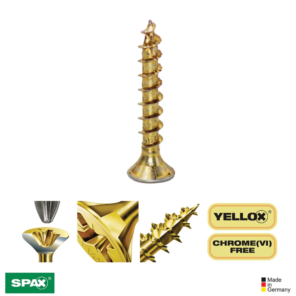 - YELLOX A2L: se alcanza una mayor protección contra la corrosión atmosférica en comparación con la galvanizada tradicional. Libre de cromo (VI) y por tanto mucho más respetuoso con el medio ambiente tanto en su uso como en su fabricación. ||Spax||
