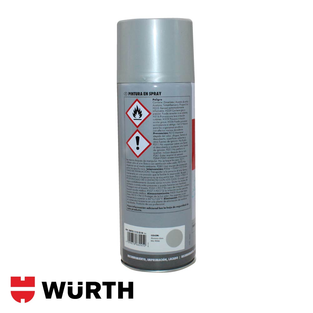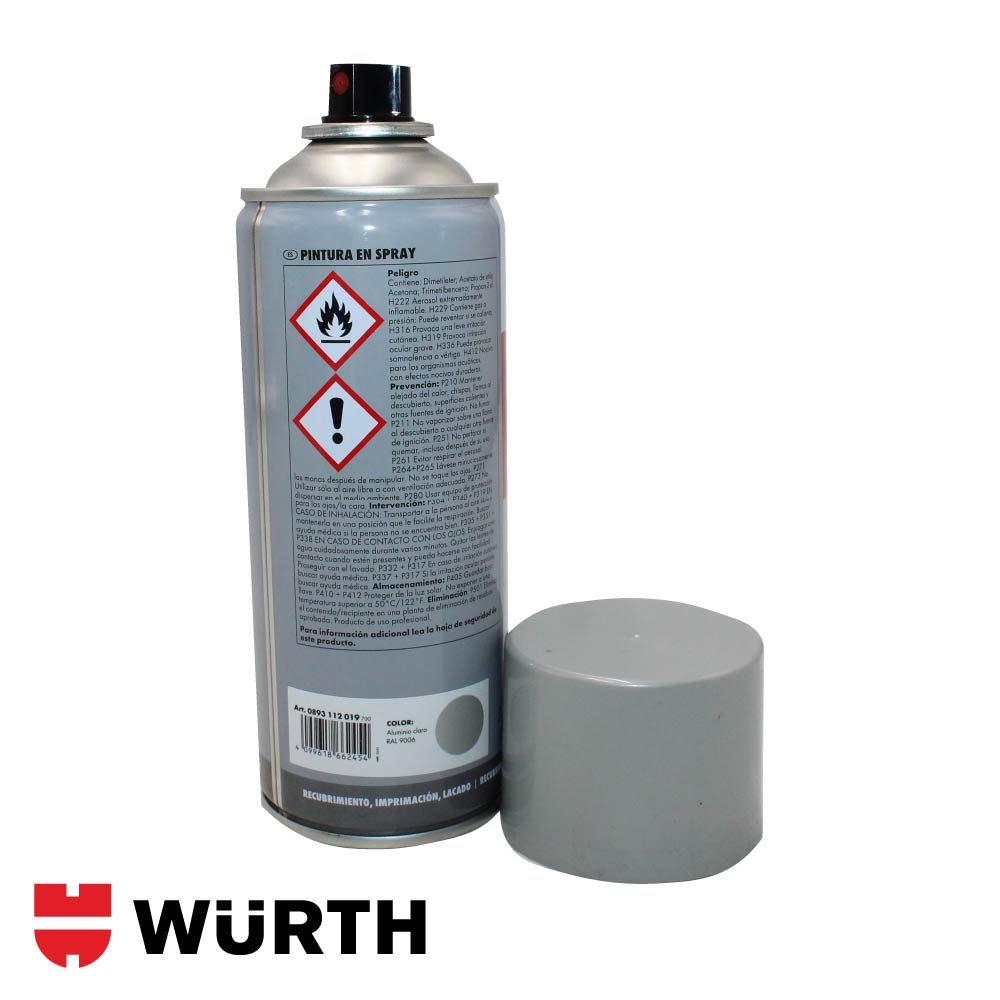 La pintura en spray Würth está formulada con base acrílica y nitroalcano, lo que le confiere un secado rápido y una excelente adherencia sobre diversos materiales. Se presenta en envases de 400 ml (250 g netos) y está disponible en una amplia gama de colores normalizados por código RAL. Su aplicación es sencilla gracias a su buena atomización y cobertura uniforme. Es resistente al agua y apta para trabajos tanto en interiores como exteriores. No es adecuada para aplicaciones que requieran resistencia a altas temperaturas.
